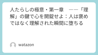 人垂らしの極意 人たらしの極意・第一章 ――「理解」の鍵で心を開錠せよ:人は褒めではなく理解された瞬間に堕ちる この記事を読む前 → 読んだ後(状態遷移)この記事は、こんな人に向けて書いている。褒めたり共感したり気を遣っているのに、なぜか距離が縮まらない人間関係が浅く終わる/都合よく扱われる/恋愛で刺さらない「何を言えば相手の心に届くのか」が分からず... 2025.12.13 人垂らしの極意人間関係